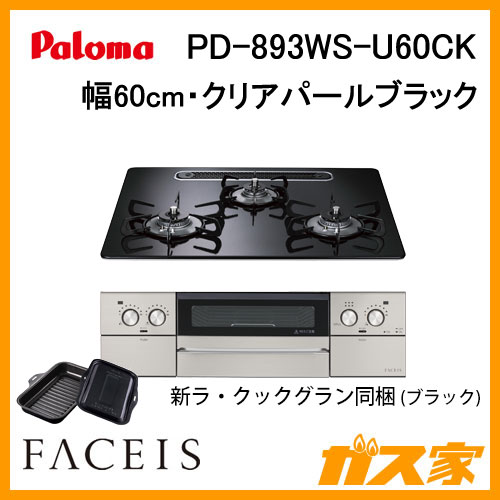 パロマのFACEIS(フェイシス)シリーズです。こちらの PD-893WS-U60CK は天板幅60cmでハイパーガラスコートトップ:クリアパールブラック・ホーローごとくです。ラ・クックと別売りのクッキングプレートに対応していて、充実したグリル調理も楽しむことができます。 (オーブン接続不可タイプ) Faceis(フェイシス)の説明はコチラ