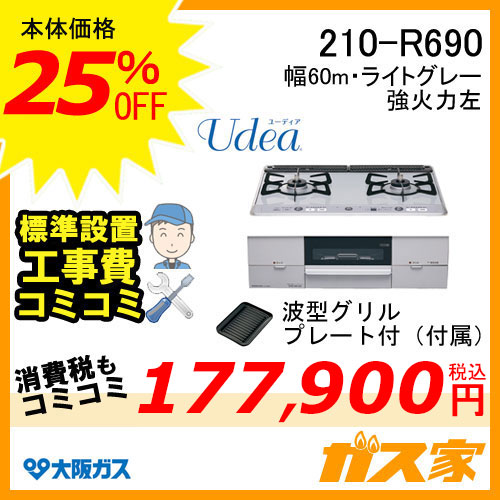 標準取替交換工事費込み-大阪ガスガスビルトインコンロUdea(ユーディア)210-R690