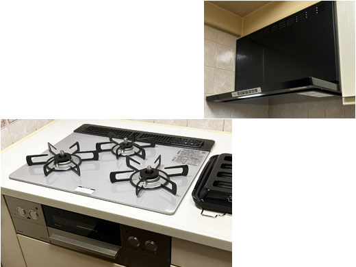 工事当日は既設機器の撤去後、新しいレンジフードおよびコンロの設置、各種接続作業、動作確認まで丁寧に実施し、安全にご使用いただける状態でお引き渡しいたしました。