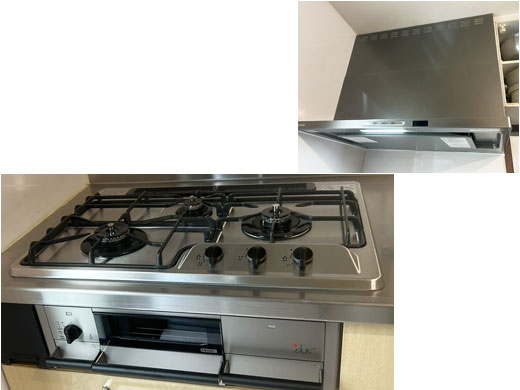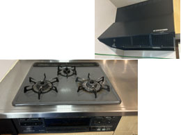 リンナイ製ビルトインコンロからノーリツ製ビルトインコンロ「+do(プラス・ドゥ)」へ取替交換、あわせてリンナイ製レンジフードTAG-REC-AP901GM(90cm)への更新を行いました。
