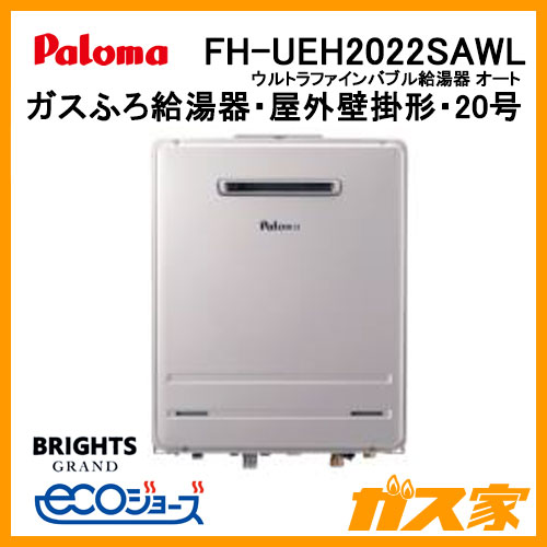 FH-UEH2022SAWLは、パロマの20号・オートタイプのエコジョーズ給湯器です。屋外壁掛型で、追い焚き機能に対応しています。