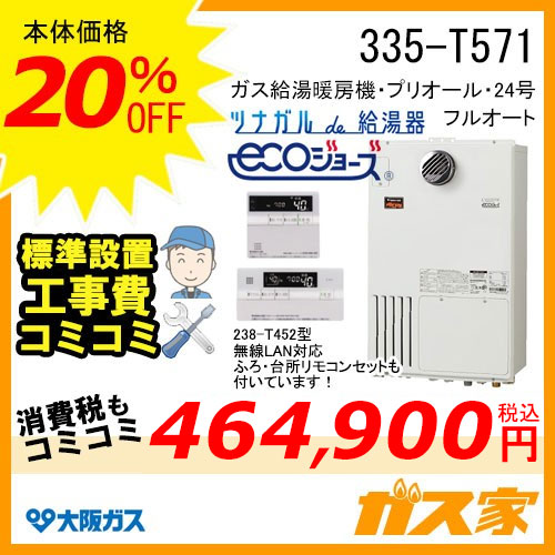 335-T571 24号ガス給湯暖房機 定価474,100円→379,200円【20%OFF】